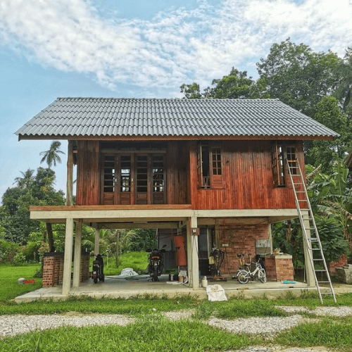 ✅ Rumah kayu dengan Lantai bawah pondasi cor beton